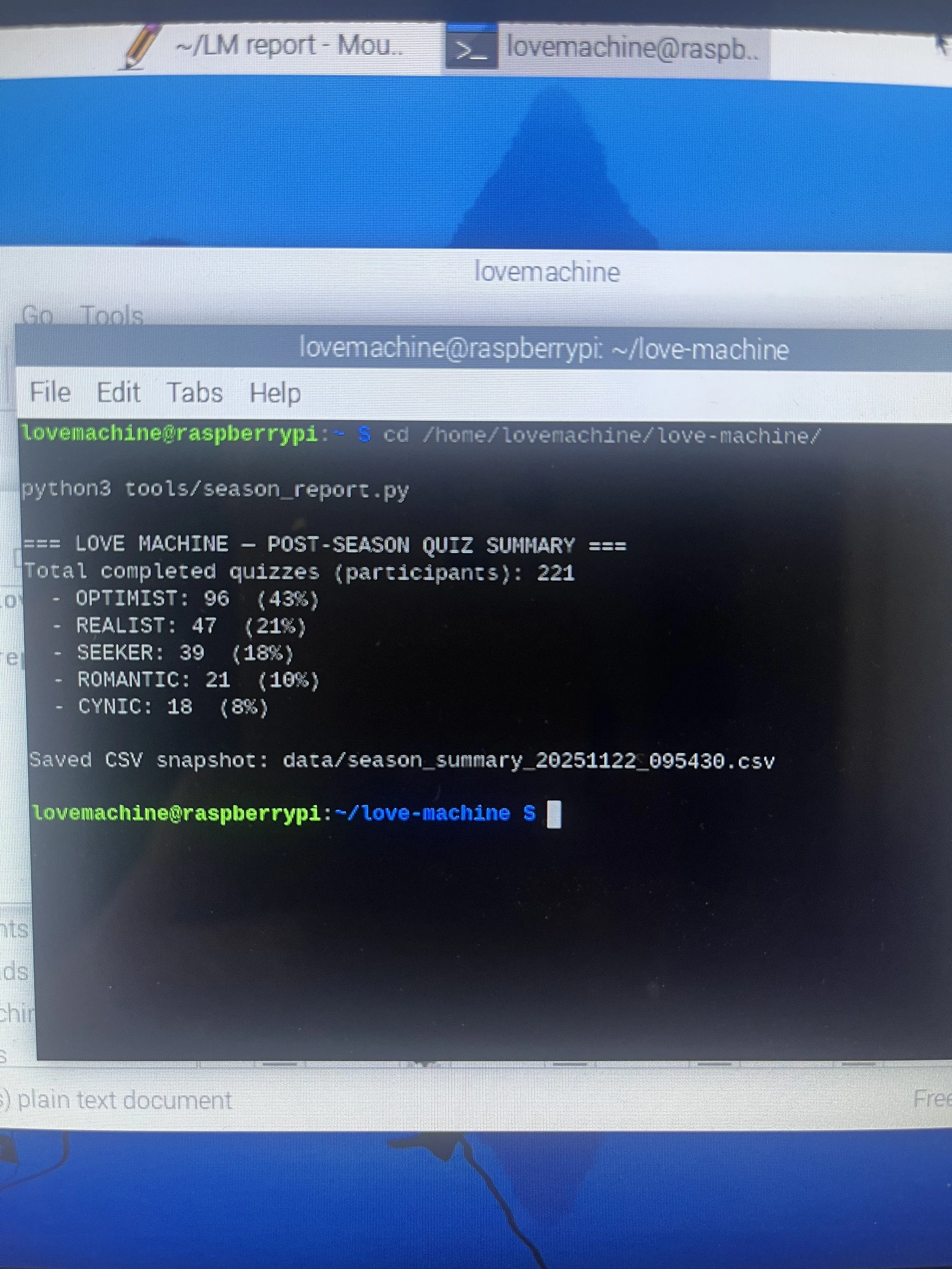 Everything was assembled by hand. This was my introduction to electronics and physical computing—I'd never worked with Raspberry Pi before.