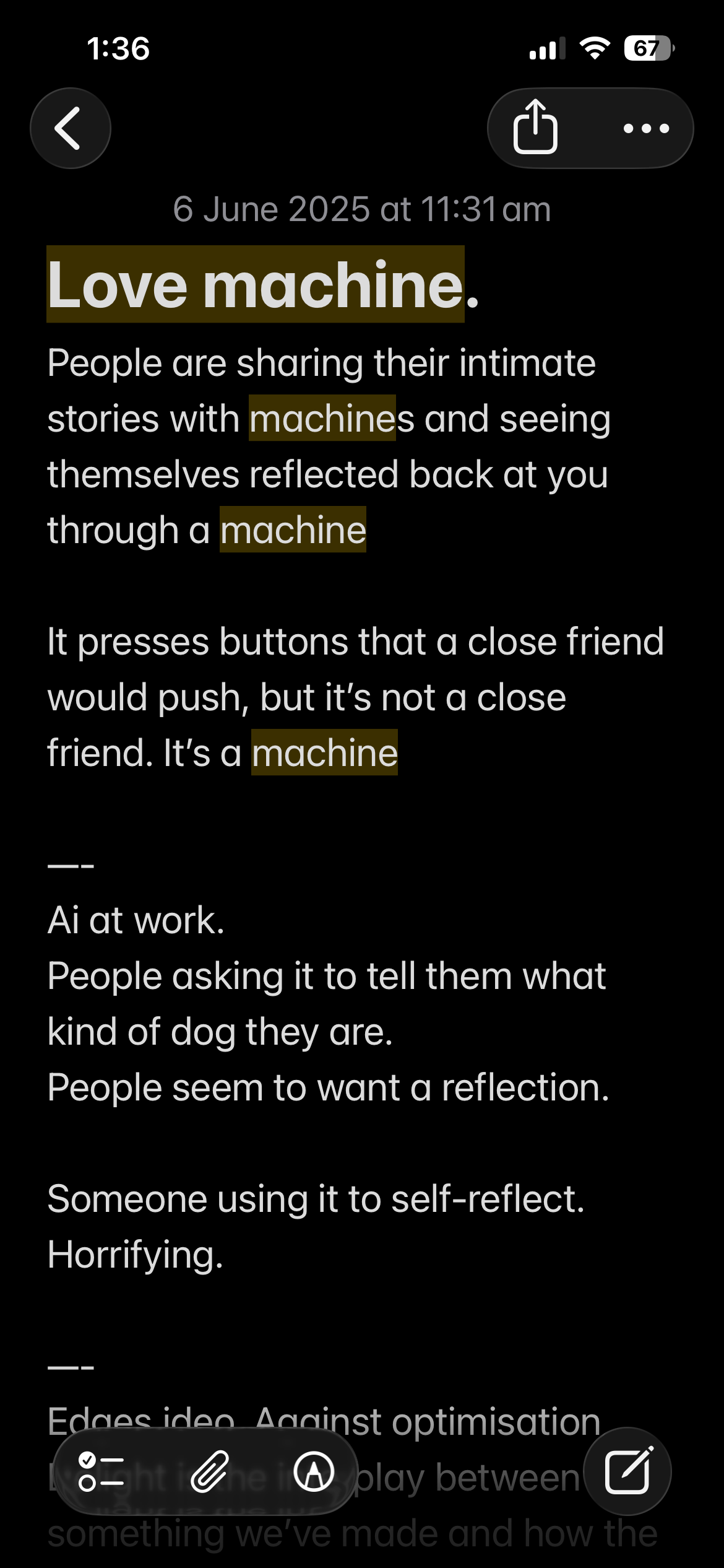 I wanted to shred the handwritten notes after scanning—a dramatic, final gesture showing that Love Machine "consumed" the story.