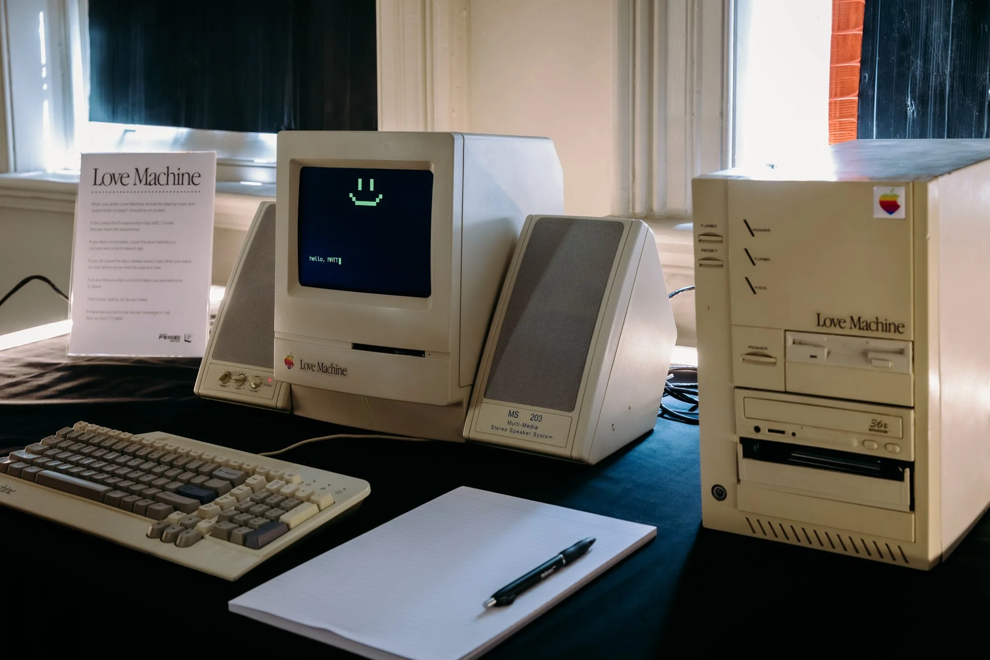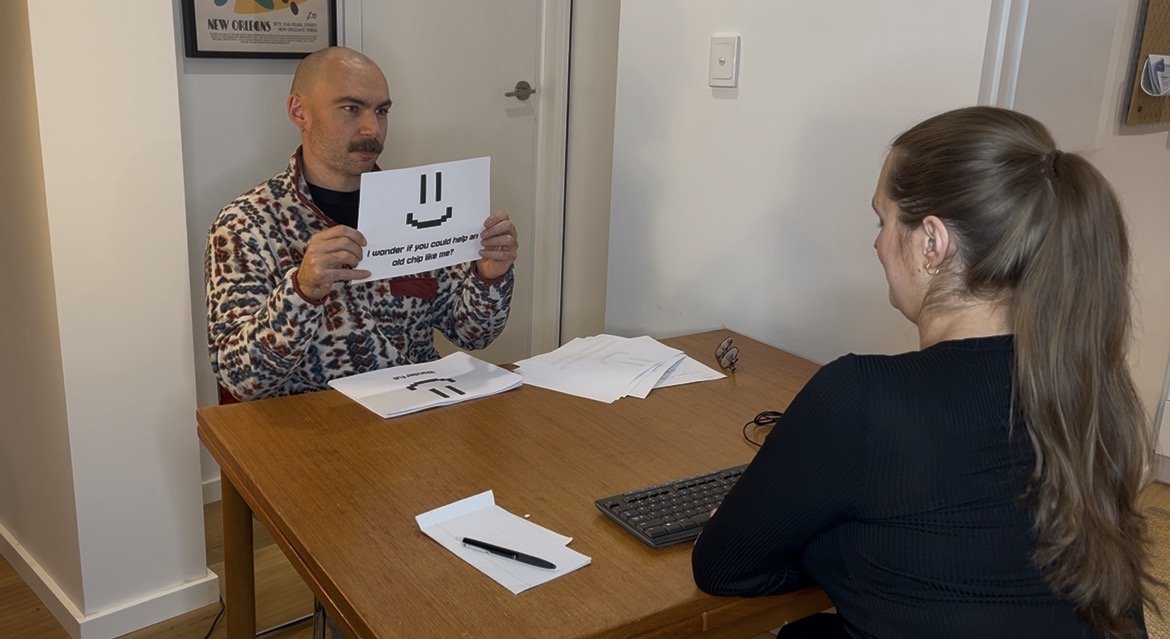 The work needed to feel old, not smart. A vintage computer lowers expectations and invites nostalgia. People are more patient, more playful.The experience must loop